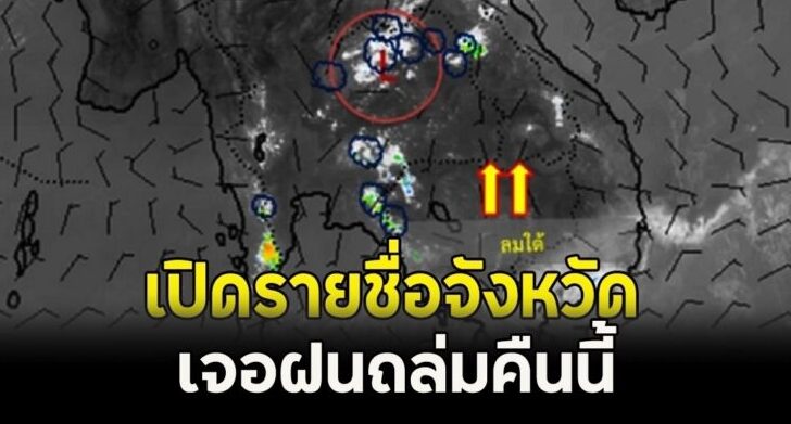 เปิดรายชื่อจังหวัด เจอฝนถล่ม คืนนี้