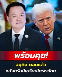 วันที่ 10 ธันวาคม 2568 เวลา 16.15 น. นายอนุทิน ชาญวีรกูล นายกรัฐมนตรี และรัฐมนตรีว่าการกระทรวงมหาดไทย ให้สัมภาษณ์กรณีที่นายโดนัลด์ ทรัมป์ ประธานาธิบดีสหรัฐอเมริกา ประกาศระหว่างการปราศรัยว่าจะโทรประสานประเทศไทยและกัมพูชาเพื่อเจรจาหยุดยิง ว่า ขณะนี้ยังไม่ได้รับการติดต่ออย่างเป็นทางการ