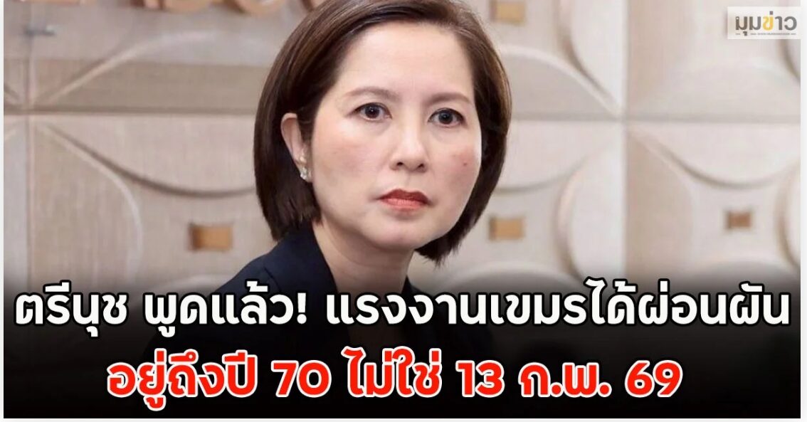 ตามมติคณะรัฐมนตรี เมื่อวันที่ 24 กันยายน 2567 และวันที่ 4 กุมภาพันธ์ 2568 จะสามารถอยู่ในราชอาณาจักรและทำงานได้ถึงวันที่ 13 กุมภาพันธ์ 2570 และสามารถต่ออายุได้อีกครั้งเดียวไม่เกิน 2 ปี ถึงวันที่ 13 กุมภาพันธ์ 2572 ดังนั้น จึงไม่มีแรงงานสัญชาติกัมพูชากลุ่มใดที่ใบอนุญาตทำงานหมดอายุวันที่ 13 กุมภาพันธ์ 2569” น.ส.ตรีนุช กล่าว