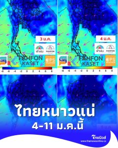 พยากรณ์อากาศเผยภาพอุณหภูมิของไทย เตรียมเย็นลงอีกในช่วงวันที่ 4-11 มกราคม 2569 พร้อมเตือนประชาชน ดูแลสุขภาพรับต้นปี