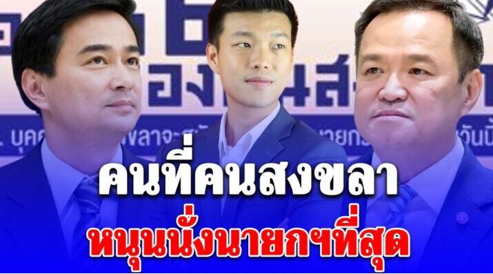 จากการสำรวจเมื่อถามถึงบุคคลที่คนสงขลาจะสนับสนุนให้เป็นนายกรัฐมนตรีในวันนี้ พบว่า