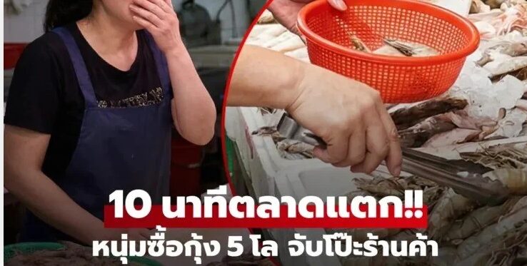 แต่ทันทีที่รับถุงกุ้งมาถือไว้ สัญชาตญาณบอกเขาว่า “น้ำหนักมันเบาเกินจริง” เขาจึงหยิบตาชั่งพกพาออกมาตรวจสอบทันทีต่อหน้าเจ้าของร้าน