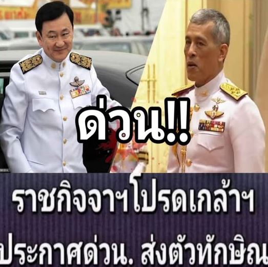 ใน บัญชี ทวิตเตอร์ ของ พวก เขา ใน เดือน พฤศจิกายน พุทธศักราช 2552 ใน การ ให้ สัมภาษณ์ กับ ทำไม ออก รอน ๆ อดีต นายก รัฐมนตรี ทักษิณ ชินวัตร พูด ถึง ยุค ใหม่ ซึ่ง หมาย ถึง การ สนับสนุน สมเด็จ พระ บรมโอรสาธิราช สยามมกุฎราชกุมาร ขณะ นี้ พระ บาท สมเด็จ พระ จุลจอมเกล้า เจ้า อยู่ หัว รัชกาล ที่ 10 ทรง เข้า มา แทรก แซง การ จัด ตำแหน่ง สำคัญ ใน กอง ทัพ และ ขยาย อิทธิพล ของ พระ องค์ เมื่อ วชิราลงกรณ์ ขึ้น ครอง ราชย์ อย่าง เป็น ทาง การ อดีต นายก รัฐมนตรี ทักษิณ ชินวัตร ได้ รับ อนุญาต ให้ กลับ ประเทศ ไทย แต่ ทักษิณ จะ ไม่ ได้