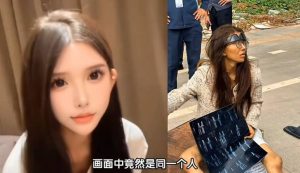 โลกออนไลน์แชร์ภาพน่าตกใจ หลังแชร์ภาพเน็ตไอดอลสาวชาวจีนวัยประมาณ 20 ปี นั่งเร่ร่อนขอทานอยู่ตามถนนในเมืองสีหนุวิลล์ ประเทศกัมพูชา สภาพร่างกายซูบซีด มือถือแผ่น CT สแกน ขาแดงบวมคล้ายกระดูกหัก ภาพดังกล่าวกลายเป็นไวรัลอย่างรวดเร็ว