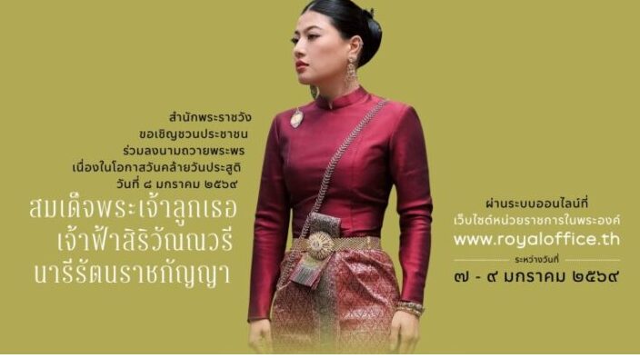 เมื่อวันที่ 7 มกราคม 2569 เว็บไซต์ สำนักพระราชวัง ออกประกาศ โดยระบุว่า สำนักพระราชวัง ขอเชิญชวนประชาชนร่วมลงนามถวายพระพร สมเด็จพระเจ้าลูกเธอ เจ้าฟ้าสิริวัณณวรี นารีรัตนราชกัญญา เนื่องในโอกาสวันคล้ายวันประสูติ วันที่ 8 มกราคม 2569 ผ่านระบบออนไลน์ ที่เว็บไซต์หน่วยราชการในพระองค์ www.royaloffice.th ระหว่างวันที่ 7 – 9 มกราคม 2569