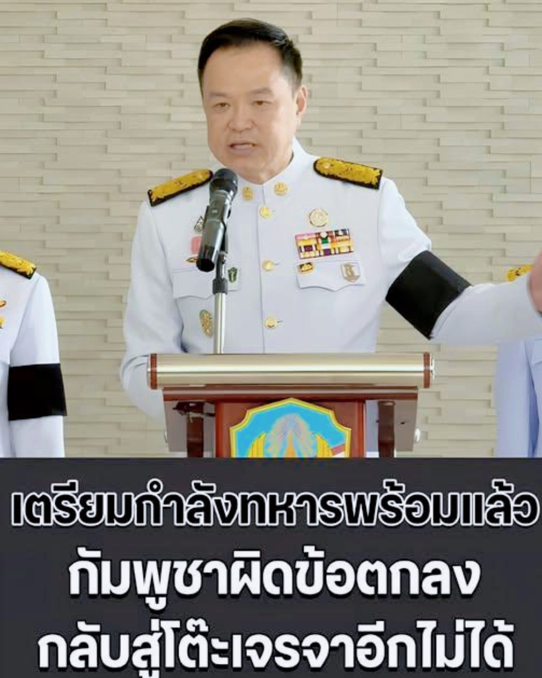 วันที่ 12 พ.ย. 2568 นายอนุทิน ชาญวีรกูล นายกรัฐมนตรี ได้กล่าวเกี่ยวกับสถานการณ์ชายแดนไทยกัมพูชาในตอนนี้ ระบุว่า เมื่อวานที่ประชุม สมช.ได้มีการประเมินสถานการณ์ วันนี้เราลงนามในปฏิญญา แต่ปฏิญญาผู้ที่ลงนามกับเราไม่ปฏิบัติ ในเมื่อไม่ปฏิบัติ ตนก็ไม่รู้จะเปรียบเทียบอย่างไรตนก็ต้องร้องเพลง my way อย่างตน อย่างพี่เล็ก พี่หยอย พี่ปู จะมานั่งโต๊ะก็ตะขิดตะขวงใจกันมันไม่ได้แล้ว เพราะ 4 ข้อหลัก 4 ข้อ คุณไม่ทำแต่เราทำ เราทำทุกข้อเราต้องการให้เกิดสันติภาพโดยเร็วที่สุด แต่เมื่อคุณไม่ทำ แล้วจะกลับมาทำใหม่ไม่ได้