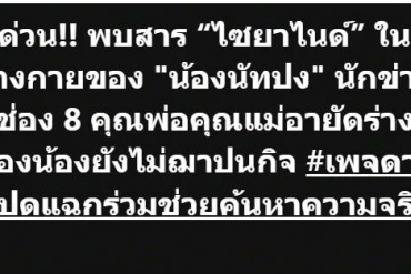 รู้แล้ว!! สารที่พบในร่าง นัท ณัฐวุฒิ นักข่าวช่อง 8 เป็นไปตามคาดสงสารมาก