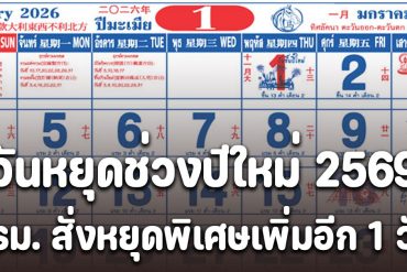 ประกาศแล้ว!! วันหยุดช่วงปีใหม่ 2569 ครม. สั่งหยุดพิเศษเพิ่มอีก 1 วัน