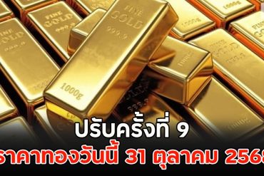 ราคาทอง วันนี้ 31 ตุลาคม 2568 ปรับครั้งที่9