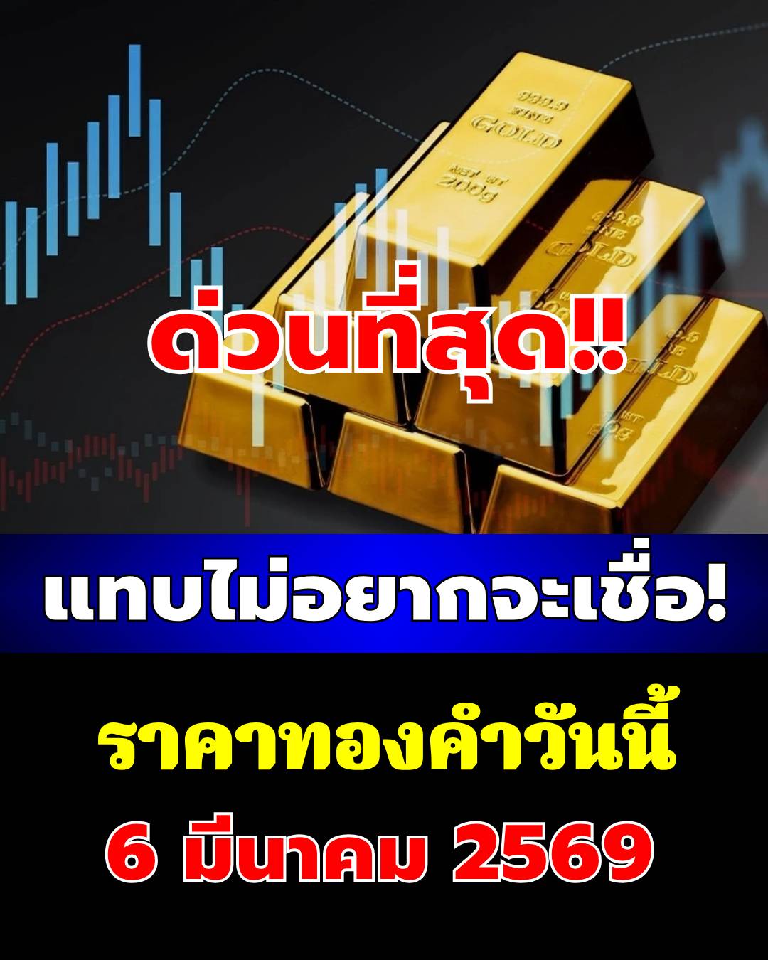 ราคาทองคำวันนี้ 6 มีนาคม 2569 โดย สมาคมค้าทองคำ ประกาศราคาทองครั้งที่ 1 (เปิดตลาด) เมื่อเวลา 09.01 น. คงที่ไม่เปลี่ยนแปลง