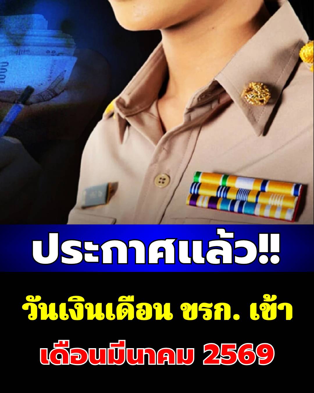 ประกาศแล้ว! วันเงินเดือน ข้าราชการเข้า เดือนมีนาคม 2569