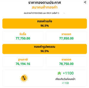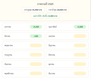 ราคาทองตั้งแต่วันที่ 1 ม.ค. 2569 – 7 มี.ค. 2569 มีการปรับราคาเพิ่มขึ้นแล้วถึง 13,000 บาท