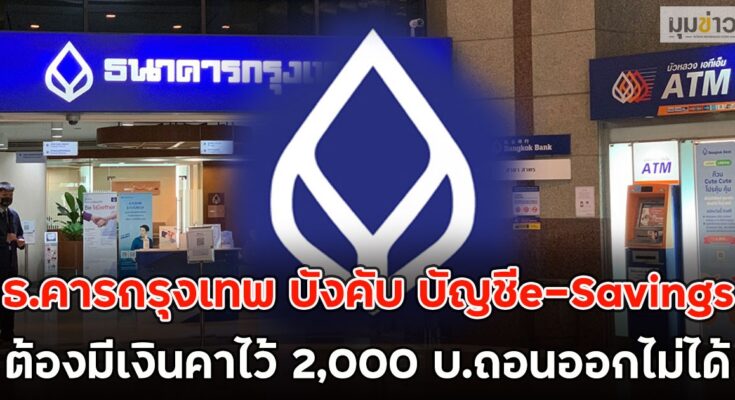 ธ.คารกรุงเทพ บังคับ บัญชีe-Savings ต้องมีเงินคาไว้ 2,000 บ.ถอน ออกไม่ได้
