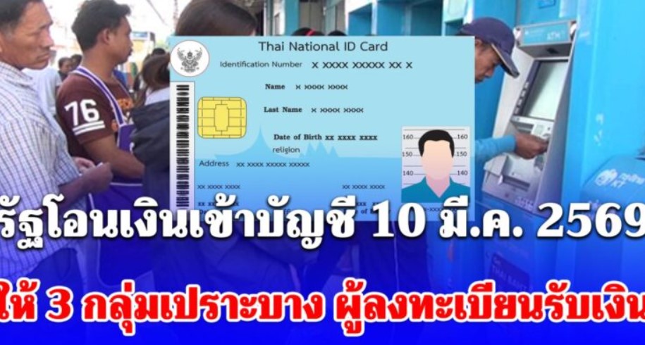 รัฐโอนเงินเข้าบัญชี 10 มี.ค. 2569 ให้ 3 กลุ่มเปราะบาง เข้าตามกำหนดผู้ลงทะเบียน รับเงิน