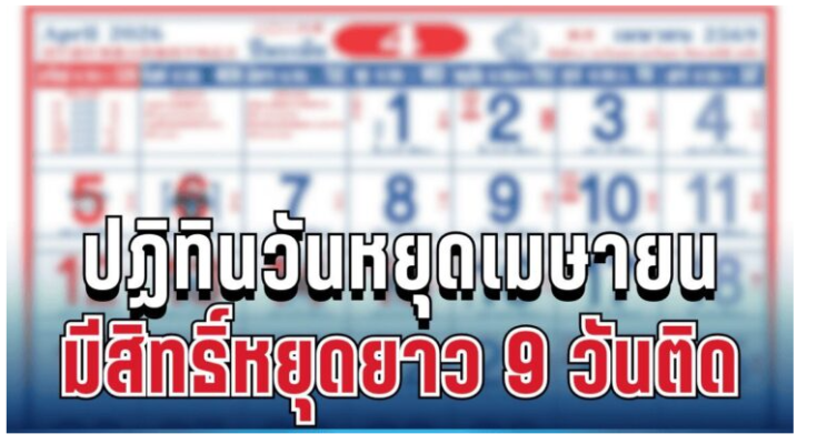 เข้าสู่เดือนเมษายน 2569 ซึ่งถือเป็นช่วงเวลาที่มนุษย์เงินเดือนและคนทำงานจำนวนมากเฝ้ารอ เนื่องจากมีวันหยุดสำคัญต่อเนื่อง โดยเฉพาะเทศกาลสงกรานต์ที่หลายคนเตรียมเดินทางท่องเที่ยวหรือกลับบ้านต่างจังหวัด