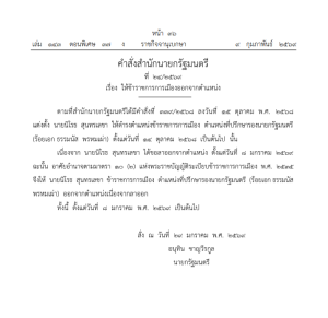 วันที่ 10 กุมภาพันธ์ 2569 มีรายงานว่า เว็บไซต์ ราชกิจจานุเบกษาได้เผยเเพร่ประกาศ คำสั่งสำนักนายกรัฐมนตรี ที่ 24/2569 เรื่อง ให้ข้าราชการการเมืองออกจากตำแหน่ง