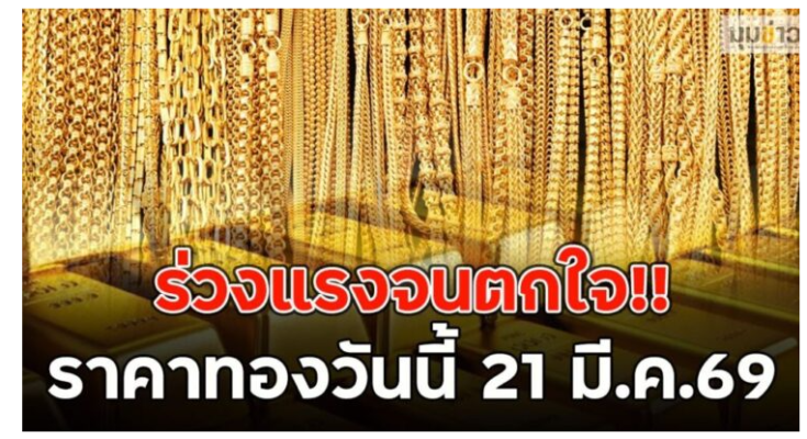ร่วงแรงจนตกใจ!! ราคาทอง วันนี้ 21 มี.ค.69