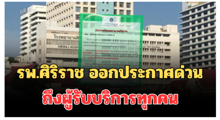 วันที่ 19 มีนาคม 2569 โรงพยาบาลศิริราช ได้ออกประกาศแจ้งผ่านเพจ Siriraj Hospital ถึงผู้รับบริการโรงพยาบาลศิริราชทุกคน โดยระบุว่า