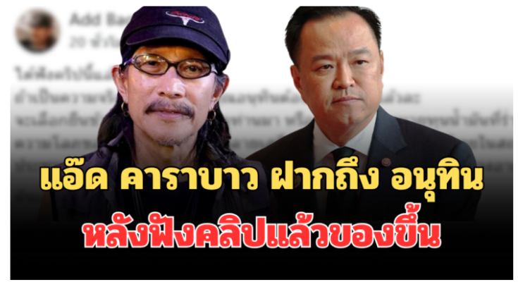 วันที่ 30 มีนาคม 2569 ที่ผ่านมา แอ๊ด คาราบาว หรือ ยืนยง โอภากุล ศิลปินเพลงเพื่อชีวิตชื่อดัง ออกมาเคลื่อนไหวผ่านเฟซบุ๊ก Add Bao แสดงความคิดเห็นถึงสถานการณ์ราคาน้ำมันในปัจจุบัน พร้อมฝากข้อความไปถึง อนุทิน ชาญวีรกูล โดยระบุว่าควรต้องตัดสินใจเลือกยืนข้างระหว่างประชาชนหรือกลุ่มนายทุนน้ำมัน