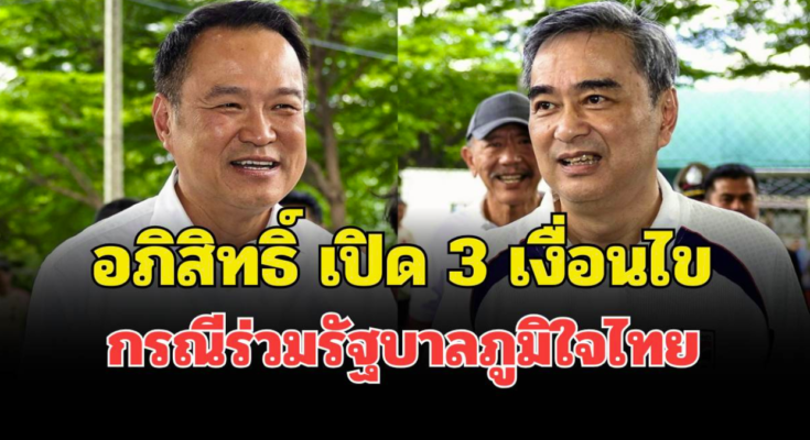 เมื่อถูกถามว่า หากไม่มี พรรคกล้าธรรม ร่วมรัฐบาล พรรคประชาธิปัตย์จะสามารถพิจารณาเข้าร่วมได้หรือไม่ นายอภิสิทธิ์ระบุว่า ยังต้องหารือในรายละเอียดเงื่อนไขอื่น ๆ โดยเฉพาะประเด็นเงินเทาและการครอบงำทางการเมือง