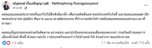 นายณัฐพงษ์ เรืองปัญญาวุฒิ หรือ เท้ง หัวหน้าพรรคประชาชน และแคนดิเดตนายกรัฐมนตรีคนที่ 33 ได้ออกมาเคลื่อนไหวผ่านเฟซบุ๊ก ชื่อ ณัฐพงษ์ เรืองปัญญาวุฒิ – Natthaphong Ruengpanyawut โดยระบุว่า