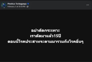 โพสต์ดังกล่าวกลายเป็นกระแสไวรัล เนื่องจากเจ้าตัวออกมาเล่าประสบการณ์ตรงหลังผ่าตัด โดยอธิบายว่าปัจจุบันใช้ชีวิตได้อย่างลำบาก ทั้งด้านร่างกาย และยังเผชิญกับภาวะโรคซึมเศร้าอีกด้วย