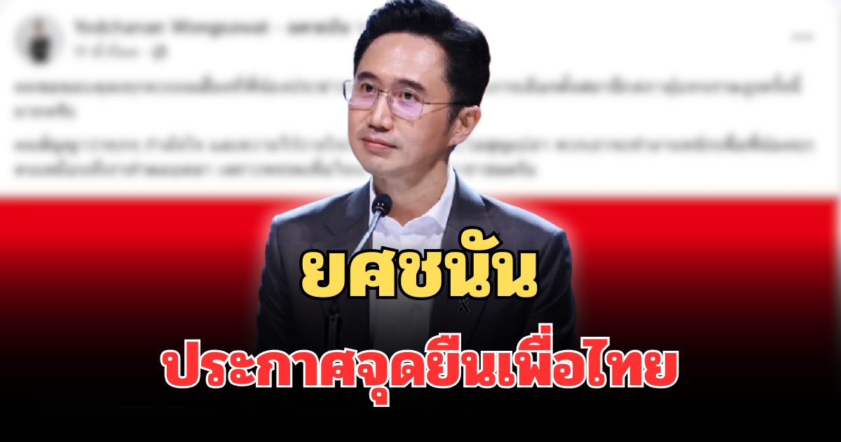 ชัดเจน! ยศชนัน ประกาศจุดยืนเพื่อไทย หลังรู้ผลคะแนน เลือกตั้ง