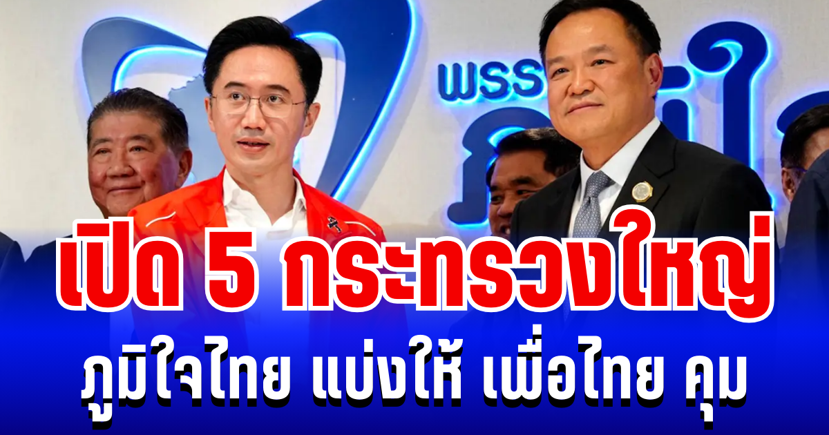 ในส่วนของพรรคเพื่อไทย มีรายงานว่า ได้รับการจัดสรร 5 กระทรวง ได้แก่