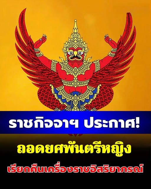พร้อมกันนี้ ยังทรงพระกรุณาโปรดเกล้าโปรดกระหม่อมพระราชทานพระบรมราชานุญาตให้เรียกคืนเครื่องราชอิสริยาภรณ์ ได้แก่ ชั้นตริตาภรณ์มงกุฎไทย จัตุรถาภรณ์ช้างเผือก จัตุรถาภรณ์มงกุฎไทย และเหรียญจักรมาลา ที่ได้รับพระราชทาน ตามข้อ 6 และข้อ 7 (8) ของระเบียบสำนักนายกรัฐมนตรีว่าด้วยการขอพระราชทานพระบรมราชานุญาตเรียกคืนเครื่องราชอิสริยาภรณ์ พ.ศ. 2548