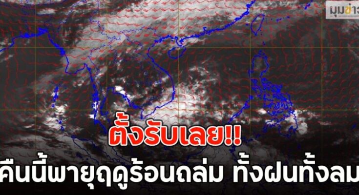 May be an image of text that says 'มุมข่าว ตั้งรับเลย!! รับ เลย!! ตั้ง คืนนี้พายุดดูร้อนถล่ม นี้ คืน ยุ ร้อ ทั้งฝนทั้งลม'