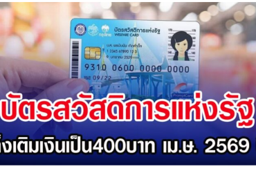 บัตรสวัสดิการแห่งรัฐ เล็งเติมเงินเป็น400บาท เม.ษ. 2569 นี้