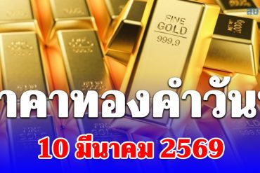 ราคาทองคำวันนี้ 10 มีนาคม 2569 โดย สมาคมค้าทองคก ประกาศราคาทองครั้งที่ 1 (เปิดตลาด) เมื่อเวลา 09.02 น. ปรับตัวเพิ่มขึ้น 200 บาท สู่บริเวณ 77,600 บาท ราคาซื้อขายทองคําในประเทศชนิด 96.5% วันอังคารที่ 10 มีนาคม 2569 (ประกาศครั้งที่…