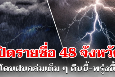 ประกาศเเล้ว! กรมอุตุฯ เปิดรายชื่อ 48จังหวัด โดนฝนถล่มเต็ม ๆคืนนี้-พรุ่งนี้
