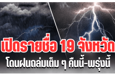 ประกาศเเล้ว! กรมอุตุฯ เปิดรายชื่อ 19 จังหวัด โดนฝนถล่มเต็ม ๆคืนนี้-พรุ่งนี้
