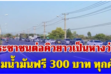 ประชาชนต่อ คิวยาวเป็นหางว่าว เติมน้ำมันฟรี 300 บาท ทุกคันทั้งเบนซิน 95 และดีเซล