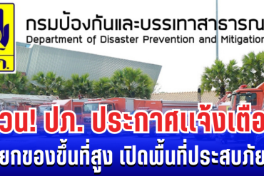 ด่วน! ปภ. ประกาศเเจ้งเตือนยกของขึ้นที่สูง เปิดพื้นที่ประสบภัย