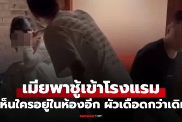เมียพาชู้เข้าโรงแรม ผัวพาพวกไปบุกถึงที่ เห็นว่ามีใครอยู่ ในห้องอีก เดือดกว่าเดิม (มีคลิป)